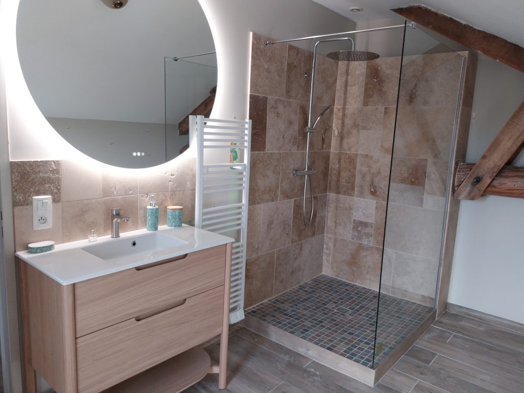 - une douche à l’italienne surélevée avec ressaut de 12 cm